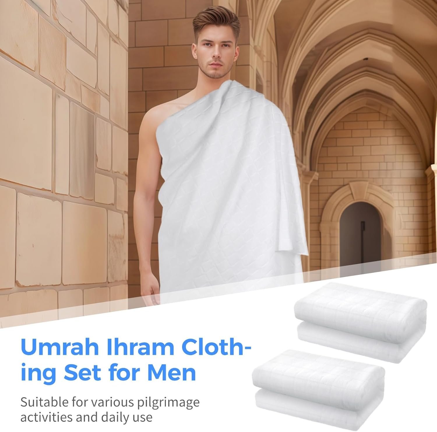 Ihram for Umrah Men, 2-Piece Ahram for Umrah Men for Daily Use Pilgrimages Cosplay, Traditional White Design, Breathable and Lightweight, Quick-Dry and Easy to Clean(43×86 Inch)
